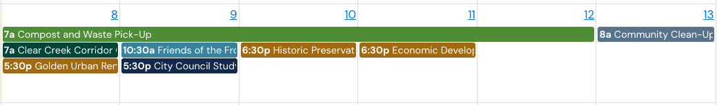 Community Clean-up Days Sat & Sun (8am-3pm) - This weekend is a once-a-year opportunity for city residents to collect and bring non-hazardous, unwanted junk for free disposal by the City. Metal, non-hazardous waste, and electronic waste will be accepted. See the list of items that are not accepted. Drop off is in north Golden (1300 Catamount Dr).